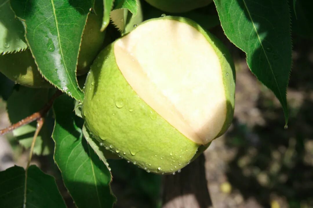 再加上古梨树娇气,碰不得半点农药,当地人说只要一喷药,树就活不成。久而久之,崇尚自然法则、无为而治的老庄哲学深入人心。不打药、不催熟、不打蜡,一切都顺其自然,静静等待它的自然成熟。