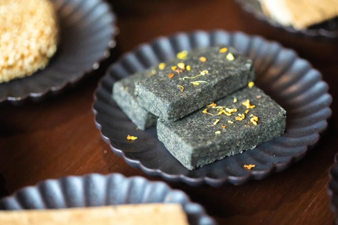 徽墨酥俗称“芝麻糕”,与墨锭的尺寸相同,长6厘米,宽4厘米,厚1厘米,以黑芝麻为主料,因形似徽墨,被称为徽墨酥。每一口徽墨酥,都是浓烈的芝麻香气与微甜的馅料完美交融,仿佛带您回到那个诗情画意的时代。