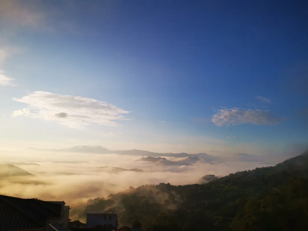 屋子是极素净的,木的温润,棉的质朴,一切的陈设都谦逊地退让着,将所有的荣耀与焦点,都让给了那扇窗,以及窗外那片无垠的、流动的虚空。一张宽大的床,临窗放着,“躺在床上就能看到”日出云海,成了日常,你只需以最松弛的、最不设防的姿态,融入这场天地间的晨昏仪式。