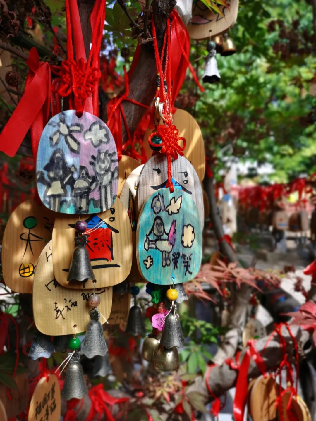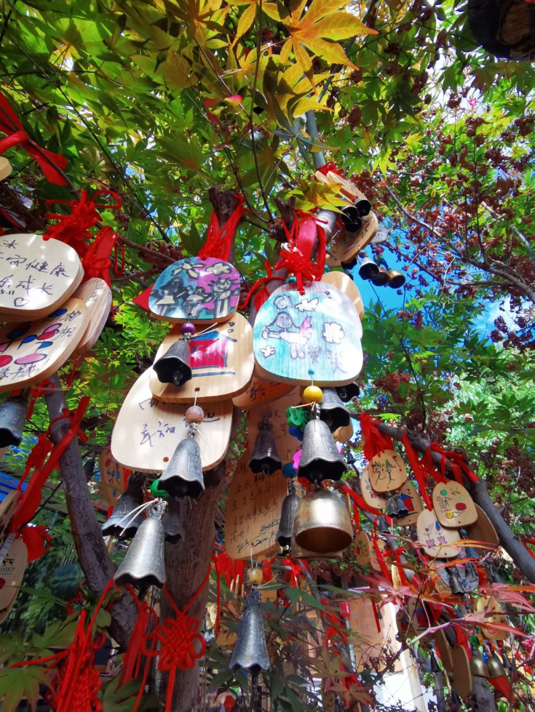 笑笑喜欢画画,当知道后院茶马古道有许愿树,可以把许下自己的心愿牌挂树上时,她就画了好几块送给爸爸妈妈、小管家们还有自己。笑笑的画特别有夏天的气息,有的画一半是蔚蓝的海水,一半是幽蓝的星空,小船儿荡漾在海水和星空之间,仿佛做着一个在银河漫游的梦。还有的画是一家三口和花儿、太阳作伴,笑笑还写下自己的名字在上面,让整个许愿牌都似乎带着最灿烂的笑,童趣得来又奇思妙想。
