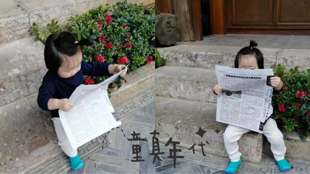 有模有样看着报纸的样子,让人不禁莞尔!