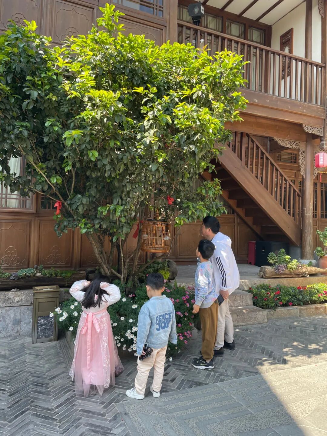 还有这些小朋友,他们会和院子里的八哥友好打着招呼,鸟语和童言之间也能默契沟通。