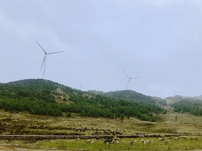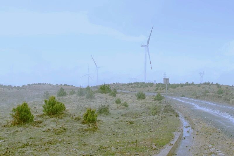 所幸,这场冰雹来得快,去得也快。到了马鞍山风电场,巨大的白色风车给了我们超乎寻常的惊喜。
