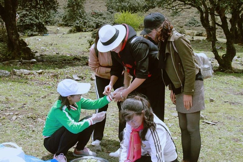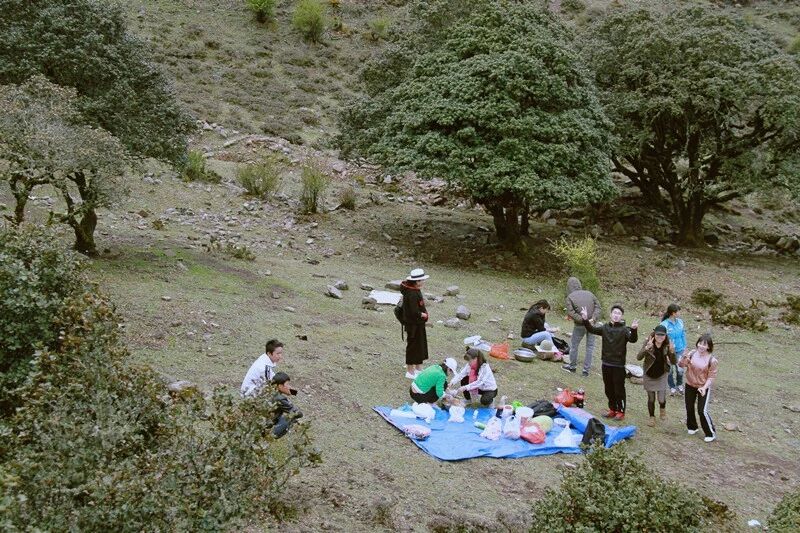 午时一过,腹中唱起了交响曲。快马加鞭的赶到目的地,接近4000米的海拔,我们需要食物给我们热量来抵御寒风。