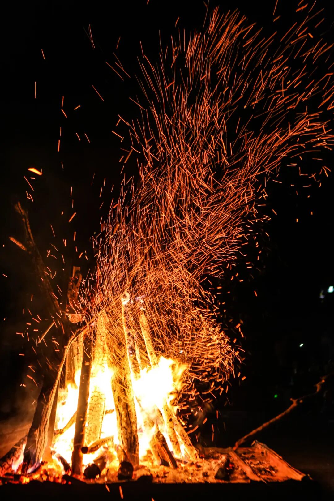 一声声“恭喜发财”、“身体健康”……数不清的愿望随着火星升腾,人们都情不自禁地对着火光许愿。